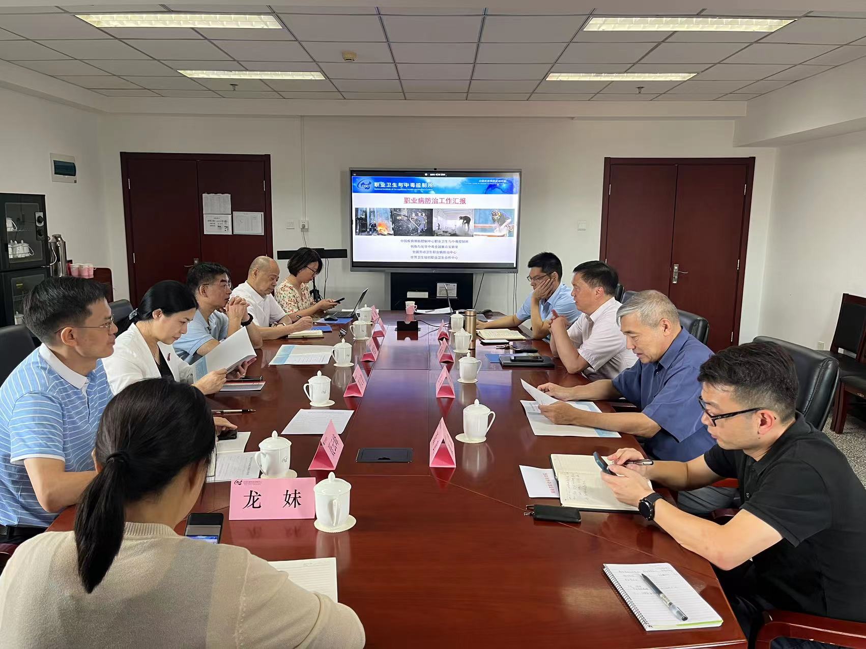 2023年9月11日,湖南省卫生健康委职业健康处罗志红处长、湖南省职业病防治院蒋文君书记带队来职业卫生所座谈交流职业健康与职业病防治工作。